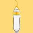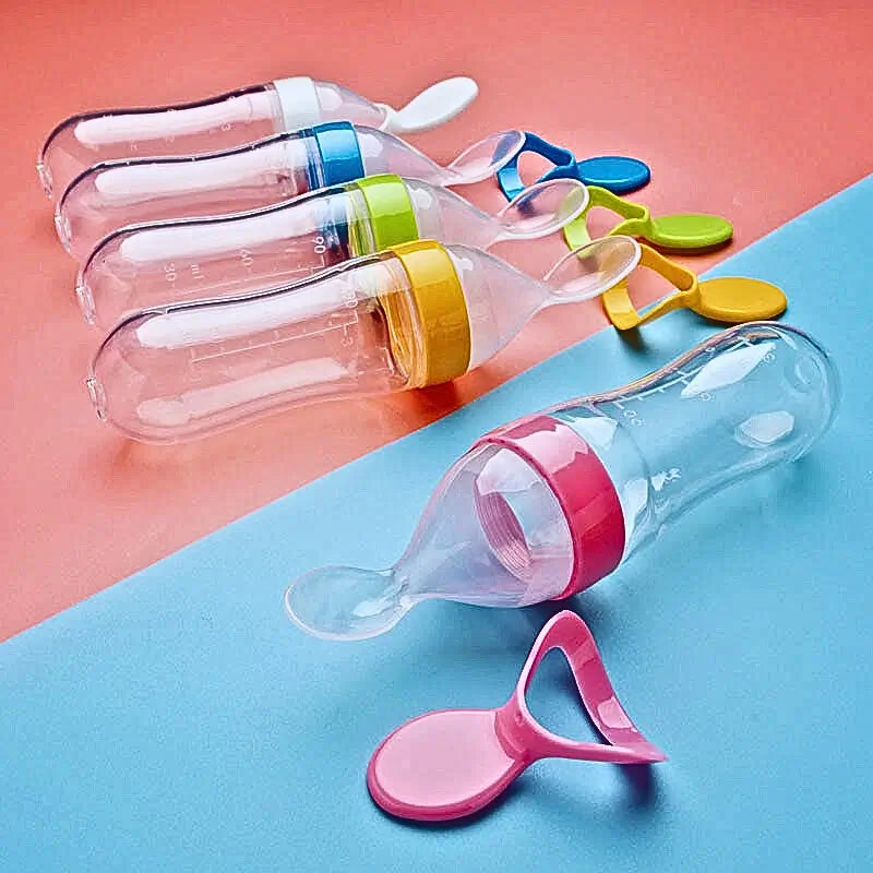 Le biberon pour bébé avec une cuillère intégrée permet de nourrir le bébé sans gaspillage de la nourriture qui est recueillie dans la cuillère.